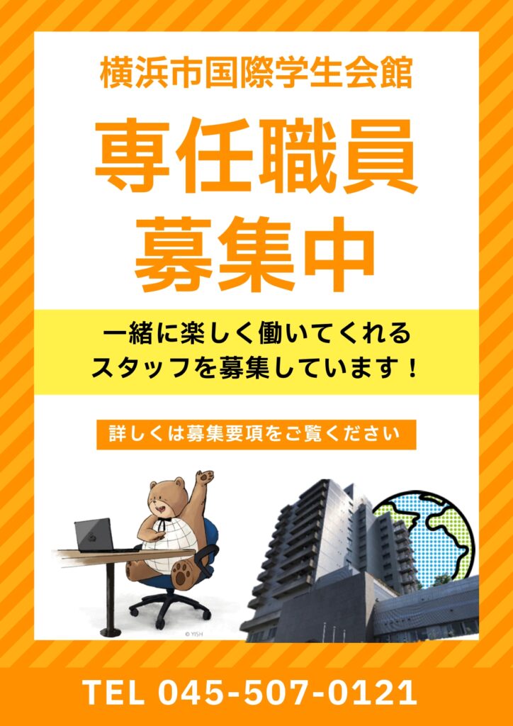 専任職員の募集は終了しました。横浜市国際学生会館は、横浜市内に住む外国人のみなさんに活躍していただく機会を地域や企業と共に提供していく事業を始めます(令和7年度横浜市ウクライナ避難民及び在住外国人(留学生)活躍機会提供業務 委託者:横浜市... -